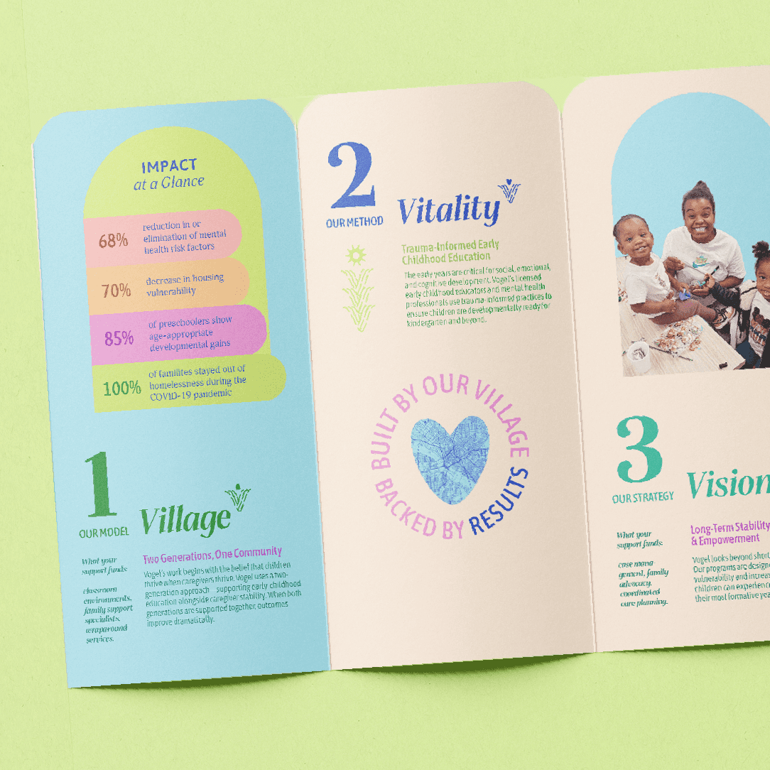 Vogel is a leading Dallas nonprofit providing early childhood education and family support services, but its previous brand lacked the warmth and clarity needed to engage the community.